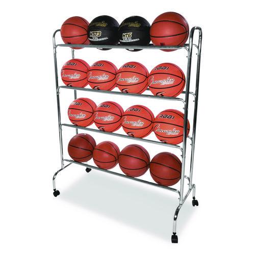 The Champion Sports Ball Cart stores balls vertically and features a stable no-topple base. Ideal for maximizing small storage space. Designed with swivel casters, this cart makes it easy to transport your team equipment to your play surface.Note: This is a non-returnable item.