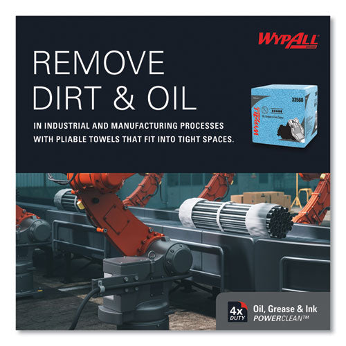 Power Clean Oil, Grease and Ink Cloths, 1/4 Fold, 12.5 x 12, Blue, 66/Box, 8 Boxes/Carton