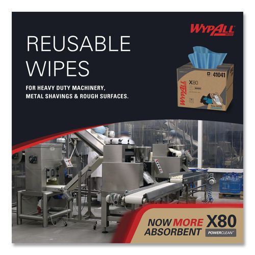 WypAll® is the number one brand of disposable wipes in the US and Canada. Maximize performance while minimizing time, effort and product waste. If you've been using industrial cloth towels, it's time to make the switch to WypAll® PowerClean™ X80 Cloths. These cloths feature innovations like high-tech Hydroknit® fast-absorbing material and are durable for scrubbing. WypAll® X80 cloths now absorb over 20% more oil and up to 15% more water than before. In addition, they now feature a tough, precision-engineered surface texture, making them even more effective for your cleaning tasks. The heavy-duty cloths are made of soft pulp fibers, bonded to a polypropylene base sheet for absorbency and durability, making them suitable for removing dirt, oil, grime and solvents in industrial and manufacturing businesses. The cloths are reusable and reinforced for strength when wet and dry. These bulk cloths are a great alternative – safer and more efficient – to replace laundered rental shop towels and cleaning towels. These premium industrial cleaning cloths can be used for heavy-duty machine and part wiping, wiping metal shavings, prepping surfaces with solvents, and cleaning rough surfaces. When you're running a business, it pays to use the very best supplies. For the toughest grease and grime, trust the performance and innovation of WypAll® PowerClean™ X80 Heavy Duty Cloths.