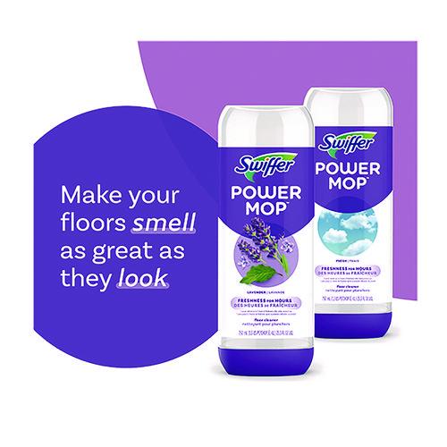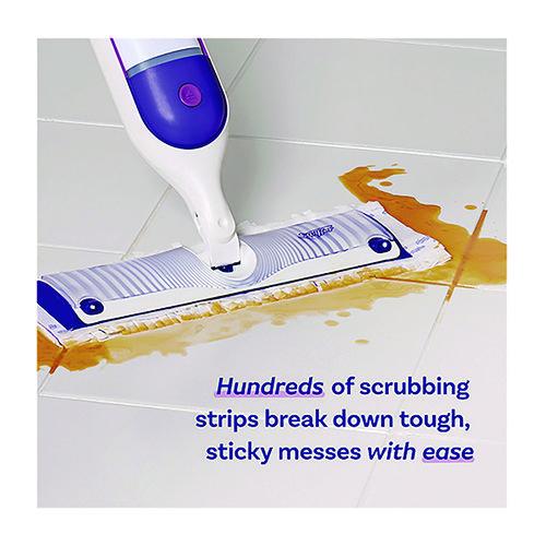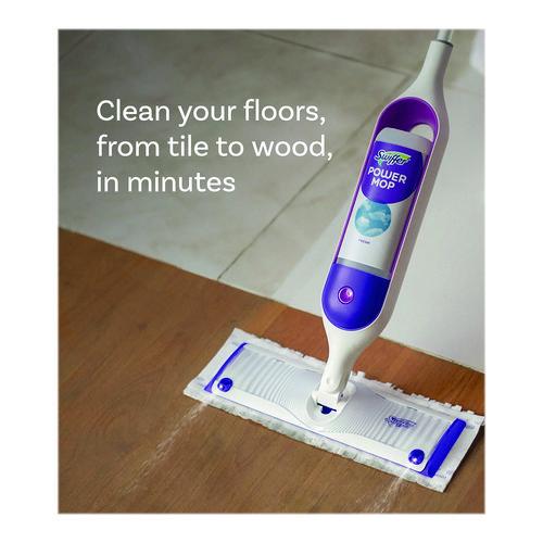 Mop smarter with the Swiffer PowerMop, an all-in-one mopping system that gives you a mop and bucket clean in half the time. The multi-surface mopping pads have 300+ scrubbing strips that reach deep into grooves and grout to remove sticky spills and daily dirt and grime.