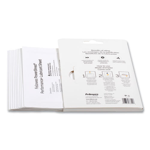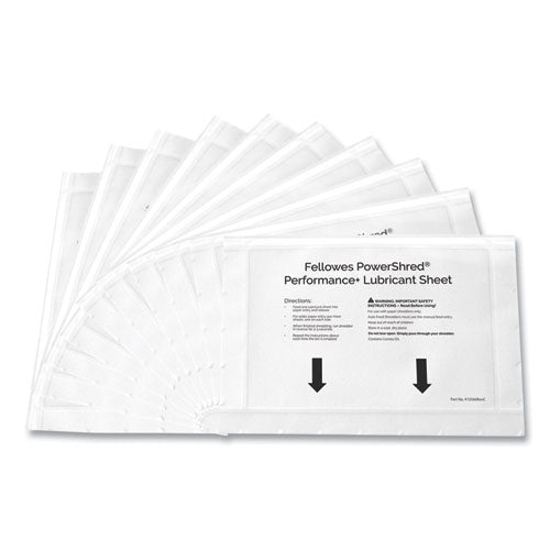 Prolong the life of your shredder and keep it running smoothly. These easy-to-use and mess-free lubricant sheets optimize shredder performance by lubricating and cleaning shredder blades to slow blade wear, reduce paper dust and prevent jams. Simply feed one lubricant sheet into your shredder as you would a piece of paper, and the specially-designed lubricant sheet drives out corrosion-causing agents. For best results, we recommend using a Performance+ Lubricant Sheet each time you empty the waste bin. Sheets are compatible with all cross-cut and micro-cut paper shredders.