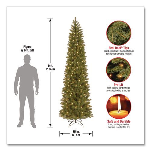 This Downswept Douglas Pencil Slim tree features Feel Real® branch tip technology, creating a tree with remarkable realism. These crush-resistant branch tips are molded from real tree branches for an authentic living tree appearance. This slim profile tree, pre-strung with clear lights, is great for display in corners or limited space areas. This tree features hinged branch construction for ease of assembly. Sturdy metal tree stand is included.Note: This is a non-returnable item.