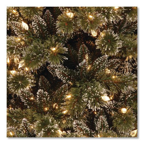 The Glittery Bristle Pine Slim is a mixed branch tree featuring sparkled bristle and slim profile that's great for display in areas with limited floor space. It is pre-strung with warm white low voltage LED lights that are energy-efficient and long lasting. This tree features hinged branch construction for ease of assembly. Sturdy metal tree stand is included.Note: This is a non-returnable item.