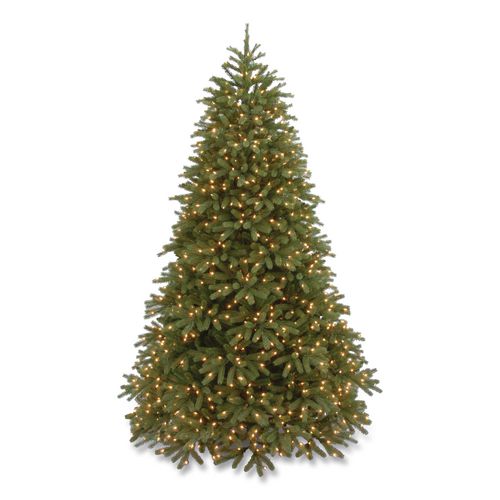 This Jersey Fraser Fir tree features Feel Real® branch tip technology, creating a tree with remarkable realism. These crush-resistant branch tips are molded from real tree branches for an authentic living tree appearance. This full-bodied tree is pre-strung with clear lights that remain lit even if a bulb burns out. The medium width of this tree may be a better fit in areas where floor space is limited. This tree features hinged branch construction for ease of assembly. Sturdy metal tree stand is included.Note: This is a non-returnable item.