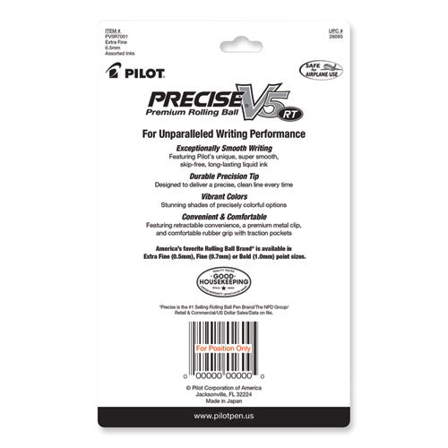 Precise V5RT Rollerball Pen, Retractable, Extra-Fine 0.5 mm, Assorted Ink and Barrel Colors, 7/Pack
