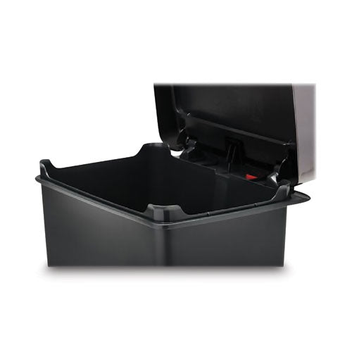 Designed with clean, modern lines and a flared base to elevate the aesthetic of the container while increasing stability. Wide, stainless steel foot pedal provides easy access and is designed to last. Quiet, controlled lid closure is designed to reduce unwanted noise and ease down gently. Lid lock keeps the container lid locked open for longer tasks, or closed to keep out pets and children.