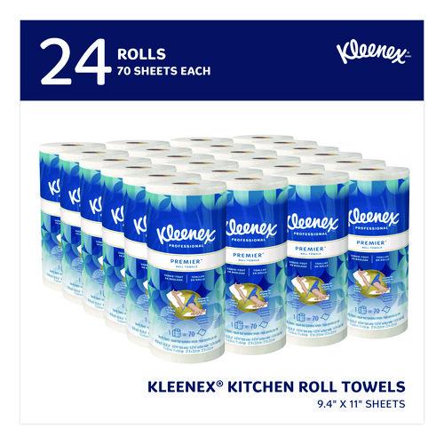 Upgrade with Kleenex Premiere Kitchen Paper Towels. They have a premium, cloth-like feel and have the strength for scrubbing and wiping up spills. Even though these premium kitchen towels are tough on cleaning tasks, the cloth-like material is soft on your skin. Each sheet is designed for tear resistance, absorbency and durability. They're soft enough to use at home (or for a home business!), but strong enough for commercial uses.