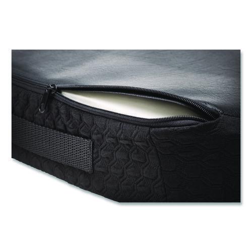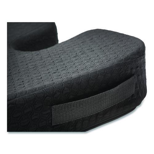 Cooling fabric with Cool-Gel core provides a certified decrease in body temperature for maximum comfort during extended periods of sitting. Ergonomic design promotes healthy posture, improves circulation and relieves spinal pressure. Zero tailbone pressure alleviates pressure on your spine using a unique u-shaped coccyx cutout to support sciatica relief by minimizing contact between tailbone and seat cushion. Premium honeycomb memory foam provides durable patent-pending structural support. Certified durability, independently verified to maintain thickness, provide ongoing support and keep seams intact beyond 80,000 uses. Machine-washable cover is easy to clean and maintains color wash after wash. Anti-slip backing prevents sliding using a high-quality silicone friction grip. Carrying strap makes it easy to transport between home, office, car and events.Note: This is a non-returnable item.