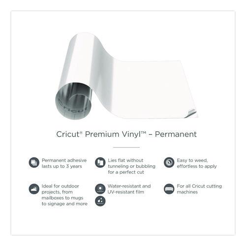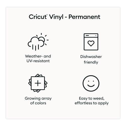 Go ahead, take it outside. Every project goes smoothly when you use permanent Cricut® Premium vinyl. This amazing vinyl lies flat on your cutting mat, no tunneling or bubbling. Cut your design, weed with ease, and apply with awe. Even your most intricate designs effortlessly separate from the carrier sheet for a perfect application. Water-and UV-resistant, permanent Cricut® Premium vinyl lasts up to three years, even in the great outdoors. For use with all Cricut® cutting machines.