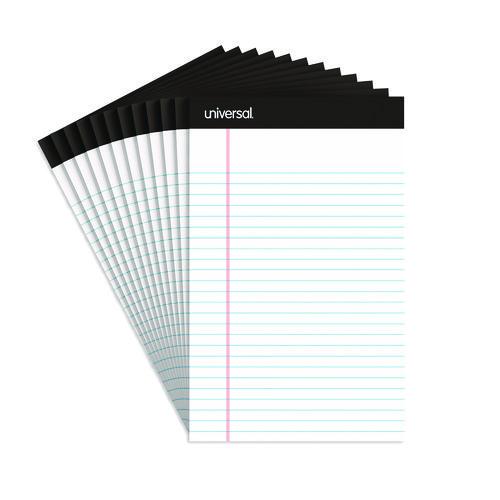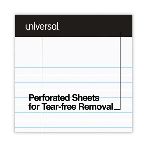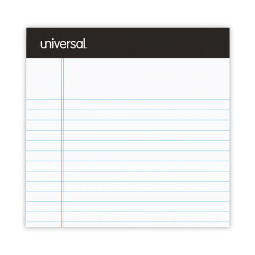 Heavyweight bright white paper with red margin rule is perforated for easy removal. Tasteful black head strip provides a professional appearance. Sturdy heavy-duty back offers support while writing away from a desk.