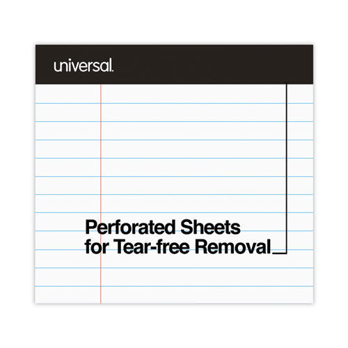 Heavyweight bright white paper with red margin rule is perforated for easy removal. Tasteful black head strip provides a professional appearance. Sturdy heavy-duty back offers support while writing away from a desk.
