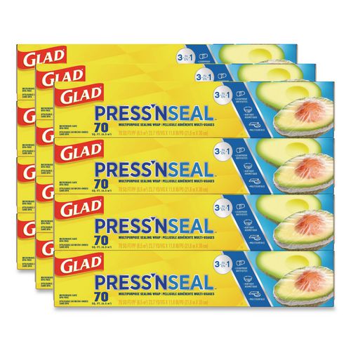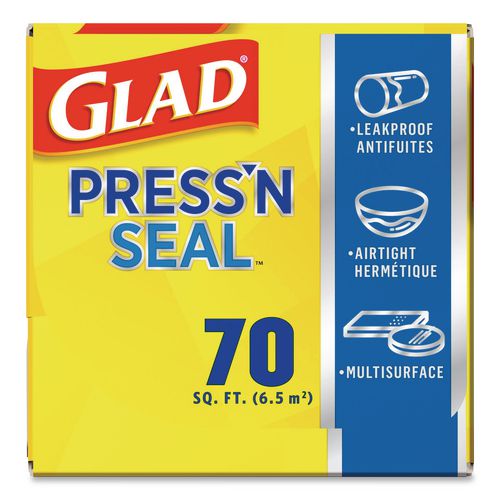 Glad® Press'n Seal® uses Griptex® technology to protect food with a leak proof and airtight seal. Great for storing and protecting leftovers, this multipurpose wrap seals tightly onto a variety of surfaces, such as paper, plastic, metal, wood or other dry surfaces. The Griptex® technology activates when pressure is applied and seals to itself, allowing you to create custom shaped food storage bags to freeze food or to make individual portions. It also works well around the house or at work to keep things clean and protected. Press'n Seal® wrap is simple to use and easy to handle. The wrap is BPA free and microwave safe. Ideal for use in restaurants, cafeterias, hotels and other commercial facilities. Glad® protects and seals with ease.