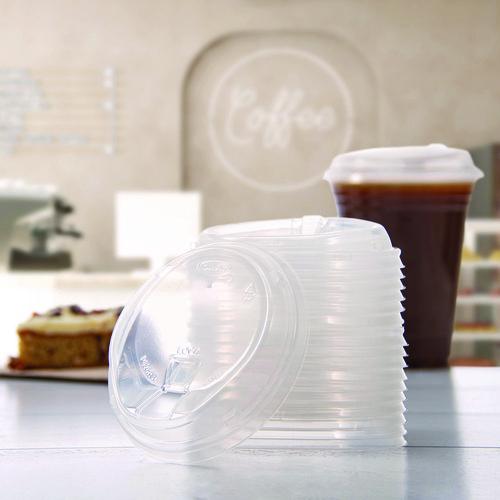 The perfect solution to going strawless. Specially designed recessed sip hole allows liquid to flow while holding ice cubes back. Features an elevated platform which allows extra room for toppings. Angled reservoir contains spills on the lid and diverts liquids back into the cup. One lid fits the five most popular cold cup sizes, reducing inventory and increasing operational efficiencies.