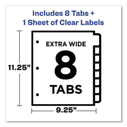 Print and Apply Index Maker Clear Label Dividers, Extra Wide Tab, 8-Tab, 11.25 x 9.25, White, 1 Set