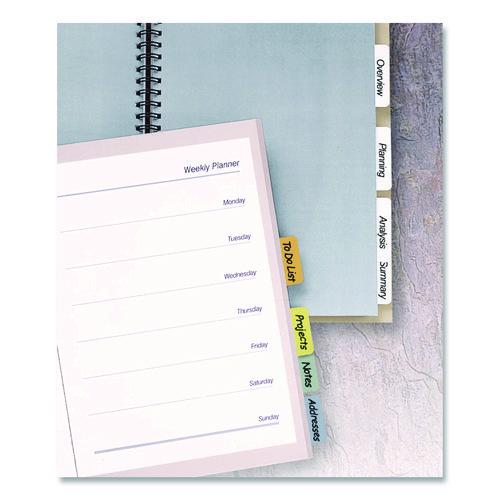 This is one sticky situation you'll appreciate. With these Printable Self-Adhesive Tabs, you can organize bound reports, reference manuals, personal organizers and more quickly and easily. Use free easy-to-use templates from Avery Design & Print to format the tabs for printing, or label them by hand. The self-adhesive tabs are repositionable when applied, allowing for a bit of experimentation to find just the right spot. Over time, the adhesive becomes permanent, proving these tabs will stick by you for the long term. Handwrite or print tabs using laser and inkjet printers.