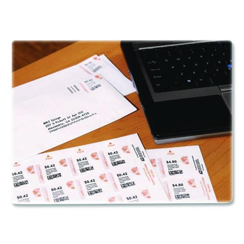 Print postage for First-Class Mail, Priority Mail Flat Rate envelopes and boxes from the convenience of your home or office inkjet or laser printer. Perforations allow the sheets to fold and detach. Comes with eight 8.5 x 11 sheets of USPS-approved stamp-ready labels.