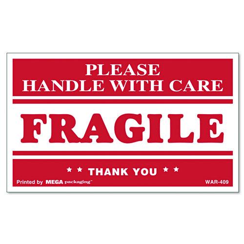 Printed Message Self-Adhesive Shipping Labels, FRAGILE Handle with Care, 3 x 5, Red/Clear, 500/Roll