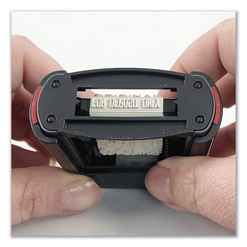 Hold 12 popular messages in one convenient, compact self-inking stamp. Choose from APPROVED, CONFIDENTIAL, COPY, EMAILED, ENTERED, FAXED, FOR DEPOSIT ONLY, ORIGINAL, PAID, POSTED, RECEIVED and VOID. Perfect for rapid, repetitive stamping. Produces 10,000 impressions before the stamp pad needs to be replaced.