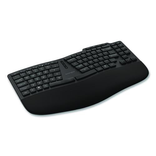 Designed to support modern workstations, the Pro Fit® Ergo KB675 EQ TKL Rechargeable Keyboard elevates your typing experience with style, comfort, and performance. The sculpted ergonomic design provides all-day comfort by supporting proper hand and wrist posture, and the curved key layout enhances productivity by accommodating the natural contour of your hands. Swift Pair Technology simplifies device connections, supporting two Bluetooth® connections and a 2.4 GHz connection with 128-bit AES government-grade encryption security. Windows and macOS compatible, the keyboard includes optional Kensington Konnect™ software for additional productivity-enhancing customization options.Note: This is a non-returnable item.