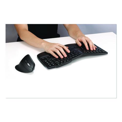 The Pro Fit® Ergo KM675 EQ Wireless Desktop Set is a premium ergonomic keyboard and mouse set. Windows and macOS compatible, the set provides a sculpted compact ergonomic keyboard and full-size vertical mouse. Designed to support all-day comfort and productivity, features include multi-device connectivity with government-grade AES 128-bit encryption, programmable keys and buttons, and long-lasting rechargeable batteries. Both the keyboard and mouse offer two Bluetooth® and one 2.4 GHz wireless connectivity. Optional software provides additional productivity-enhancing customization options.Package Includes: Charging CableNote: This is a non-returnable item.