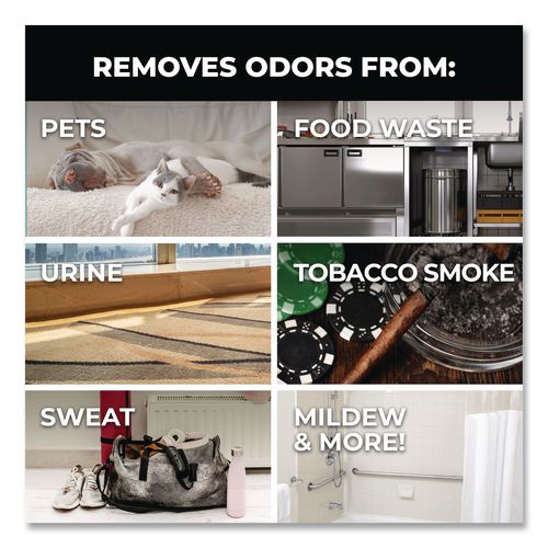 Simple Green® Pro Odor Eliminator is a concentrated cleaner and long-lasting odor neutralizer that removes unpleasant airborne and surface odors caused by pets, urine, sweat, food waste, tobacco smoke, mildew and more, leaving behind an invigorating eucalyptus scent. Works great on carpet, bedding, upholstery, laundry, vehicles, dumpsters, trash cans, toilets, lockers, shoes, diaper pails, sports equipment, artificial turf, dog beds and crates—both indoors and out. Ideal for use in homes, office buildings, restrooms, restaurants, retail stores, schools, gyms, spas and wherever odors linger.