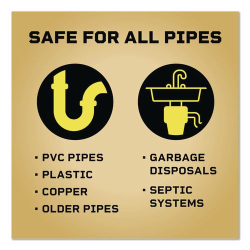 Get 3x action with Liquid-Plumr® Pro-Strength Clog Destroyer. This formula clears the toughest clogs and destroys, protects and prevents clogs with regular monthly use. Featuring Pipeguard Technology™ to prevent pipes from being damaged as the clog dissolves, this Liquid-Plumr® gel dissolves hair, grease and more and is safe for all pipes, including garbage disposals, plastic, metal, septic systems and older pipes. Whether you have a total blockage or a slow running drain, it works in the bathtub, public showers, bathroom sink, office sink and garbage disposal, and when used monthly prevents buildup and stops clogs from forming. For garbage disposals, follow same usage directions and flush with disposal running. Avoid all splashing.