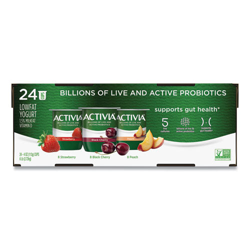 With only 60 calories per serving and no added sugar this is a sweet and healthy yogurt choice. A great aid to regulating your digestive system to reduce bloating, inflammation or feeling uncomfortable. Bring a cup to work for a quick breakfast, pair with your favorite granola or pack in the kids lunches for a nutritious and delicious snacking option.Package Includes: (8) Black Cherry; (8) Peach; (8) StrawberryNote: This is a non-returnable item.