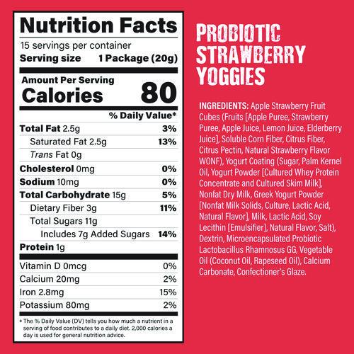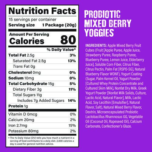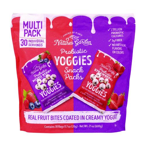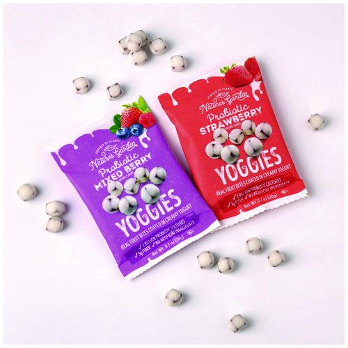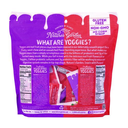 Real fruit and creamy, natural yogurt in a bite-sized snack, need we say more? Reap the wonders of billions of probiotics with Nature's Garden Probiotic Yoggies Snack Pack, a snack that's delicious and functional for the whole family. Chow down with this healthier-for-you treat that's creamy, chewy, and crazy delicious.Note: This is a non-returnable item.