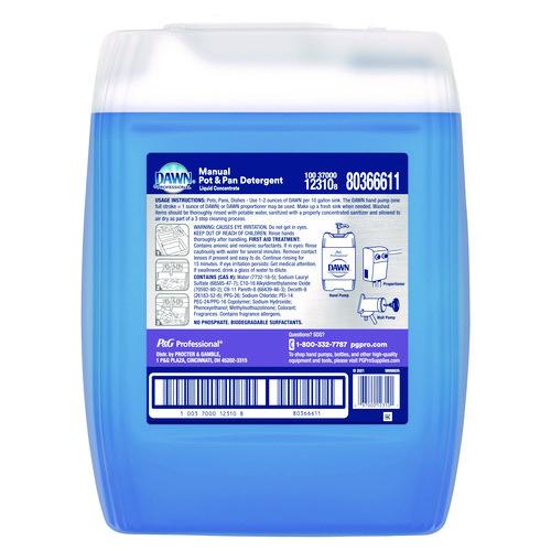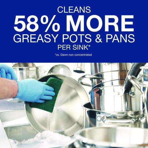 Dawn Professional Manual Pot and Pan Detergent is a highly concentrated liquid dishwashing soap that has the grease-fighting power of Dawn and is specifically formulated for tough jobs at your business. This liquid dish soap is specially formulated to help remove greasy food soils from pots, pans and utensils. Dawn dish detergent can work as an all-purpose cleaner for a variety of task areas, including three-compartment sinks (wash sink), countertops, dining areas, cooler doors, windows (outside and inside), portable equipment, trash receptacles, coffeemakers, drive-thru menu boards, and tile walls.
