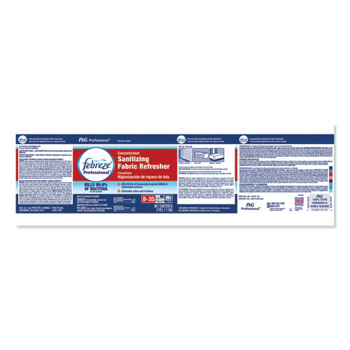 Soft surfaces that can't be washed, such as mattresses and upholstered furniture, are harbors for harmful bacteria, mold and mildew. Febreze Professional Sanitizing Fabric Refresher gives you the same freshening power of Febreze plus the soft surface sanitization your environment needs. Proprietary technology goes to the source of odors and fights them. A light, fresh scent is left behind to leave the treated area smelling fresh and clean. Safe for virtually all fabrics. Spray soft surface until fully wet and the soft surface must remain wet for five minutes.