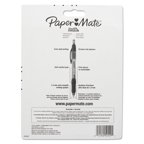 Experience fluid, effortless writing with the Paper Mate® Profile Retractable Ballpoint Pen. The bold ink dries quickly to help reduce smudges for tidy, clean writing, while the click-advance retractable tip protects pockets and purses. With its smooth-flowing ink and soft contoured grip, this pen keeps you comfortable during extended writing sessions.