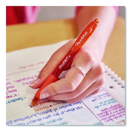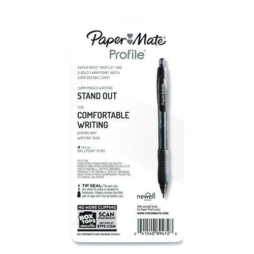 Experience fluid, effortless writing with the Paper Mate® Profile Retractable Ballpoint Pen. The bold ink dries quickly to help reduce smudges for tidy, clean writing, while the click-advance retractable tip protects pockets and purses. With its smooth-flowing ink and soft contoured grip, this pen keeps you comfortable during extended writing sessions.