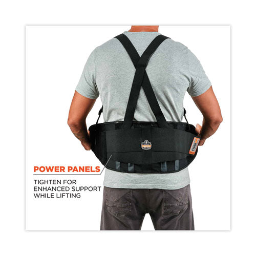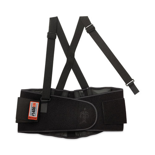 The ProFlex 1400UN Universal Size Back Support Brace provides lower-back and abdominal support for lifting heavy objects, while accommodating nearly any waist size. Universal-fit design accommodates waist sizes ranging from 25 to 58. Non-conductive polypropylene stays and comfortable-stretch 280D spandex body ensure long-lasting integrity. Before lifting heavy objects, simply tighten the support belt to enhance the body's intra-abdominal pressure; and after lifting, just loosen the belt to achieve a wider range of motion. Secure-fit, interior rubber-track webbing prevents the belt from riding up when bending or lifting. Innovative Power Panel Positioners keep the tension bands close-to-hand, making it easy to get the desired level of tension. Adjustable, detachable suspenders allow the wearer to tailor the shoulder-fit to his or her unique needs. For best results, the support should fit snugly around the wearer's hips, with the front of the support two-fingers below the wearer's navel. When worn correctly, workers can easily maintain the proper posture for lifting, while achieving the extra support required to safely complete the task. Easy-to-use hook-and-loop closure keeps the belt securely fastened while in use. Brace can be worn over or underneath clothing. Machine washable—machine-wash cold and air dry.Note: This is a non-returnable item.