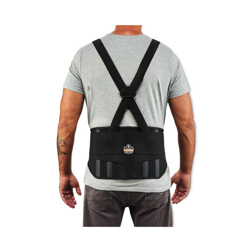 The ProFlex 1600 Standard Elastic Back Support Brace is designed to remind workers of proper lifting techniques while also enhancing the body's intra-abdominal pressure, moving the stress away from the spine for back-pain relief. Premium, all-elastic body with a 9 wide belt provides extra-firm support, and a contoured, high-cut front panel delivers a more comfortable fit. Before lifting heavy objects, simply tighten the support belt to enhance the body's intra-abdominal pressure; and after lifting, just loosen the belt to achieve a wider range of motion. Secure-fit, interior rubber-track webbing prevents the belt from riding up when bending or lifting. Innovative Power Panel Positioners keep the tension bands close-to-hand, making it easy to get the desired level of tension. Non-conductive polypropylene stays help ensure long-lasting integrity. Adjustable, detachable suspenders allow the wearer to tailor the shoulder-fit to his or her unique needs. For best results, the support should fit snugly around the wearer's hips, with the front of the support two-fingers below the wearer's navel. When worn correctly, workers can easily maintain the proper posture for lifting, while achieving the extra support required to safely complete the task. Easy-to-use hook-and-loop closure keeps the belt securely fastened while in use. Brace can be worn over or underneath clothing. Machine washable—machine-wash cold and air dry.Note: This is a non-returnable item.