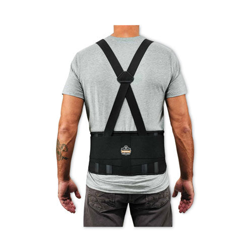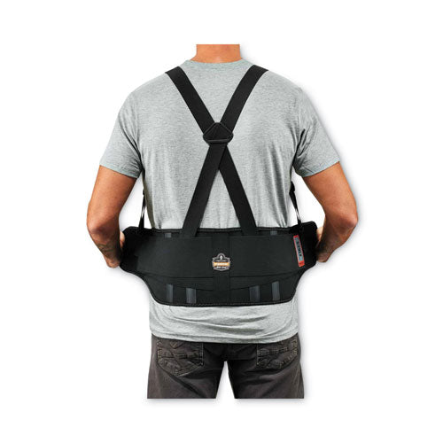 The ProFlex 1625 Standard Elastic Back Support Brace is designed to remind workers of proper lifting techniques while also enhancing the body's intra-abdominal pressure, moving the stress away from the spine for back-pain relief. Premium, all-elastic body with a 7.5 wide belt provides extra-firm support, and a contoured, high-cut front panel delivers a more comfortable fit. Before lifting heavy objects, simply tighten the support belt to enhance the body's intra-abdominal pressure; and after lifting, just loosen the belt to achieve a wider range of motion. Secure-fit, interior rubber-track webbing prevents the belt from riding up when bending or lifting. Innovative Power Panel Positioners keep the tension bands close-to-hand, making it easy to get the desired level of tension. Non-conductive polypropylene stays help ensure long-lasting integrity. Adjustable, detachable suspenders allow the wearer to tailor the shoulder-fit to his or her unique needs. For best results, the support should fit snugly around the wearer's hips, with the front of the support two-fingers below the wearer's navel. When worn correctly, workers can easily maintain the proper posture for lifting, while achieving the extra support required to safely complete the task. Easy-to-use hook-and-loop closure keeps the belt securely fastened while in use. Brace can be worn over or underneath clothing. Machine washable—machine-wash cold and air dry.Note: This is a non-returnable item.