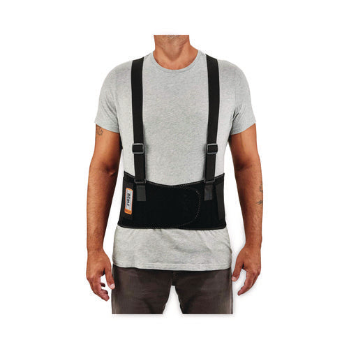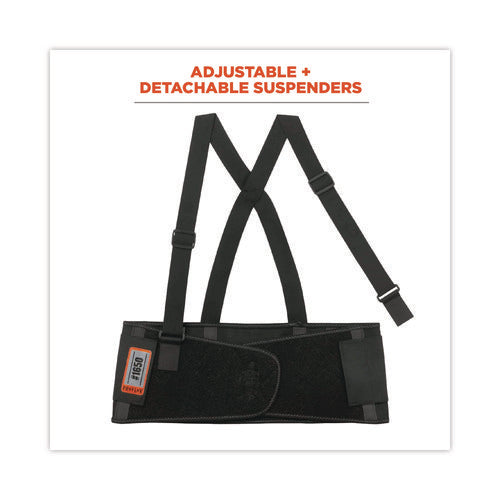 The ProFlex 1650 Economy Elastic Back Support Brace is designed to remind workers of proper lifting techniques while also enhancing the body's intra-abdominal pressure, moving the stress away from the spine for back-pain relief. Flexible, breathable all-elastic body with a 7.5" wide belt provides extra-firm support. Before lifting heavy objects, simply tighten the support belt to enhance the body's intra-abdominal pressure; and after lifting, just loosen the belt to achieve a wider range of motion. Secure-fit, interior rubber-track webbing prevents the belt from riding up when bending or lifting. Innovative Power Panel Positioners keep the tension bands close-to-hand, making it easy to get the desired level of tension. Non-conductive polypropylene stays help ensure long-lasting integrity. Adjustable, detachable suspenders allow the wearer to tailor the shoulder-fit to his or her unique needs. For best results, the support should fit snugly around the wearer's hips, with the front of the support two-fingers below the wearer's navel. When worn correctly, workers can easily maintain the proper posture for lifting, while achieving the extra support required to safely complete the task. Easy-wear, 5" wide fastener strap with hook and loop closure keeps the belt securely fastened while in use. Brace can be worn over or underneath clothing. Machine washable—machine-wash cold and air dry.Note: This is a non-returnable item.