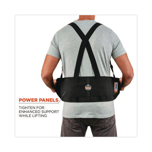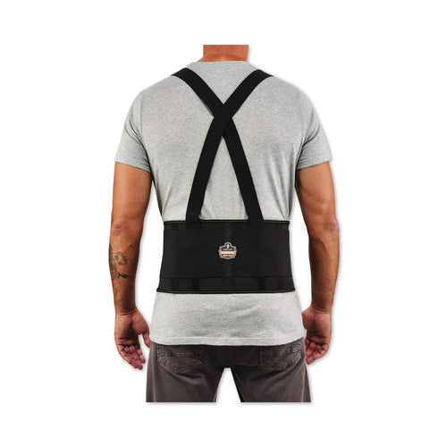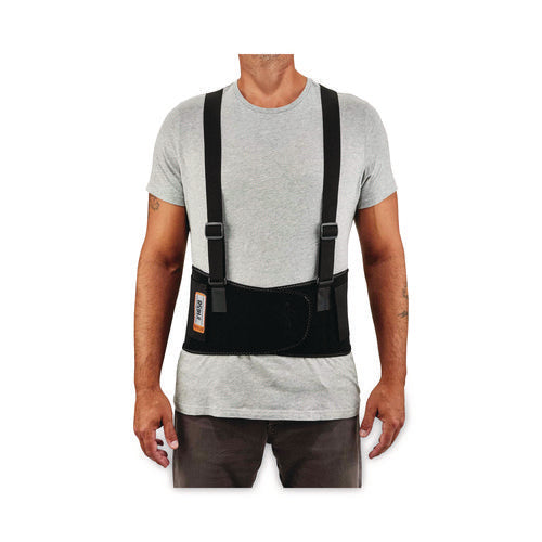 The ProFlex 1650 Economy Elastic Back Support Brace is designed to remind workers of proper lifting techniques while also enhancing the body's intra-abdominal pressure, moving the stress away from the spine for back-pain relief. Flexible, breathable all-elastic body with a 7.5" wide belt provides extra-firm support. Before lifting heavy objects, simply tighten the support belt to enhance the body's intra-abdominal pressure; and after lifting, just loosen the belt to achieve a wider range of motion. Secure-fit, interior rubber-track webbing prevents the belt from riding up when bending or lifting. Innovative Power Panel Positioners keep the tension bands close-to-hand, making it easy to get the desired level of tension. Non-conductive polypropylene stays help ensure long-lasting integrity. Adjustable, detachable suspenders allow the wearer to tailor the shoulder-fit to his or her unique needs. For best results, the support should fit snugly around the wearer's hips, with the front of the support two-fingers below the wearer's navel. When worn correctly, workers can easily maintain the proper posture for lifting, while achieving the extra support required to safely complete the task. Easy-wear, 5" wide fastener strap with hook and loop closure keeps the belt securely fastened while in use. Brace can be worn over or underneath clothing. Machine washable—machine-wash cold and air dry.Note: This is a non-returnable item.