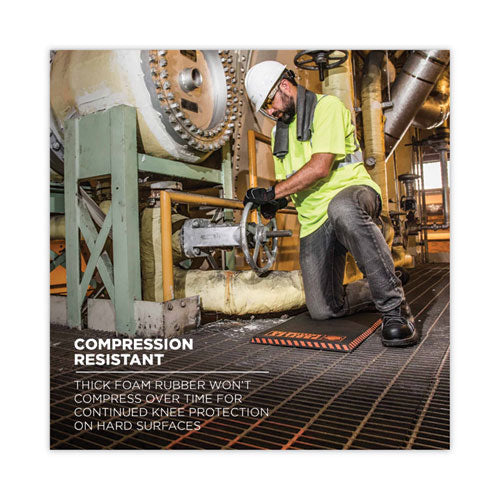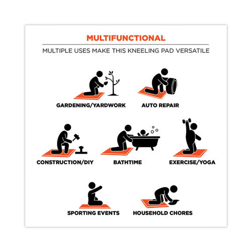 The ProFlex 390 Extra Large Kneeling Pad is built with a beveled safety edge and provides cushioning comfort and knee protection for static kneeling situations on large work surfaces. This kneeling mat is made with thick nitrile rubber (NBR) closed cell foam which will keep its shape over time and won't absorb liquids. The durable closed-cell foam is non-conductive, resistant to petroleum and silicone-free. A built-in convenient handle allows for easy transport and hanging storage making it the perfect knee cushion for work on the jobsite, in the garage, the garden or at home. This extra-large kneeling pad is designed for kneeling on cold surfaces, hard steel, concrete, grating, gravel and wet surfaces. Ideal for mechanics, construction, plumbers, electricians, flooring or anyone looking for comfortable knee support without having to strap on work knee pads. Also great as a garden kneeler or for work around the house.Note: This is a non-returnable item.