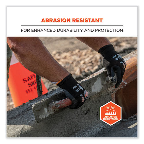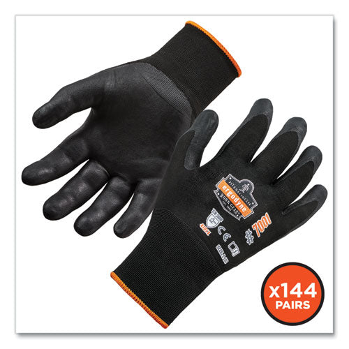 The ProFlex 7001 Nitrile Coated Gloves feature a durable DSX coating for optimal grip and dexterity in dry conditions. The 18-gauge nylon-spandex knit makes for a soft, lightweight and flexible form fit while still meeting ANSI level 2 abrasion resistance for safety around rough materials. Ideal for handling small parts, the combination of DSX coating and thin form-fitting knit delivers enhanced dexterity compared to bulkier safety gloves. The snug knit cuffs are longer than most on the market, a feature that enhances fit and extends protection while keeping dirt and debris out. Coated in two-layer DSX nitrile, a.k.a. (D)ry (S)urface E(X)treme, these utility work gloves are designed for optimal performance when handling dry materials and surfaces. The double layers of smooth abrasion-resistant nitrile boost glove durability and feel while remaining comfortably flexible for enhanced dexterity.Note: This is a non-returnable item.
