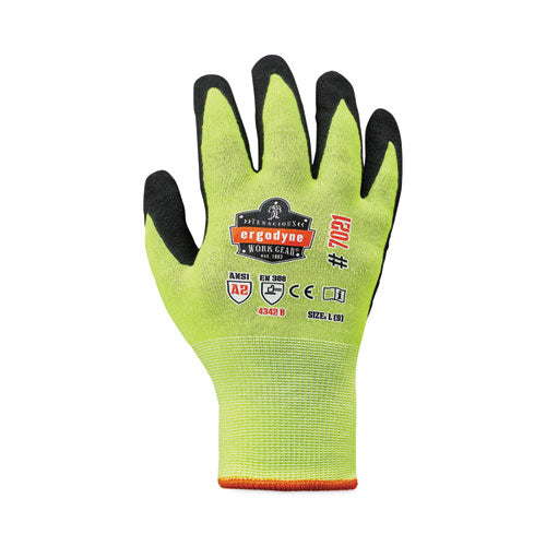 The ProFlex 7021 Nitrile Coated Gloves feature ANSI A2 cut protection for safety around sharp materials. Unlike other bulky cut-resistant gloves, the 18-gauge HPPE nylon-spandex knit protects hands while maintaining a soft, lightweight and flexible form fit. The snug knit cuffs are longer than most on the market, a feature that enhances fit and extends protection while keeping dirt and debris out. Coated in WSX nitrile, (W)et (S)urface E(X)treme, these utility work gloves are designed for optimal performance when handling wet or oily materials and surfaces. To prevent hands from overheating, they are first dipped in a water-based PU coating that wicks sweat and allows airflow to pass through. Then, they are dipped in an innovative anti-slip sandy nitrile designed to absorb and disperse liquids from the surface.Note: This is a non-returnable item.