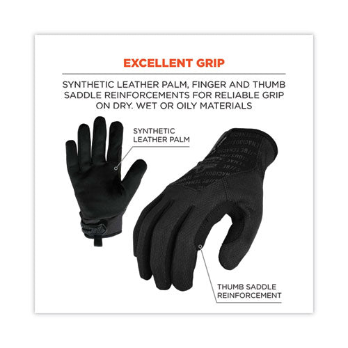 The ProFlex 812BLK High-Dexterity Black Tactical Gloves provide versatile hand protection for a variety of jobs or recreational activities. A synthetic leather palm and reinforced thumb saddle provide enhanced grip and feel when handling equipment and materials. These comfortable tactical gloves are made of a flexible and breathable poly mesh for cool, no-bulk wear. A low-profile hook-and-loop closure means a secure fit, while the pull-on tab makes for easy on and off. An ID space along the hook & loop closure helps workers keep track of their gloves. Plus, touchscreen-capable fingertips and thumbs so you can swipe, tap and type on smartphones and tablets without taking gloves off. The black-on-black color scheme is great for tactical or everyday use. Ideal for military and law enforcement professionals, mechanics, hunters, motorcyclists and shooting sports.Note: This is a non-returnable item.