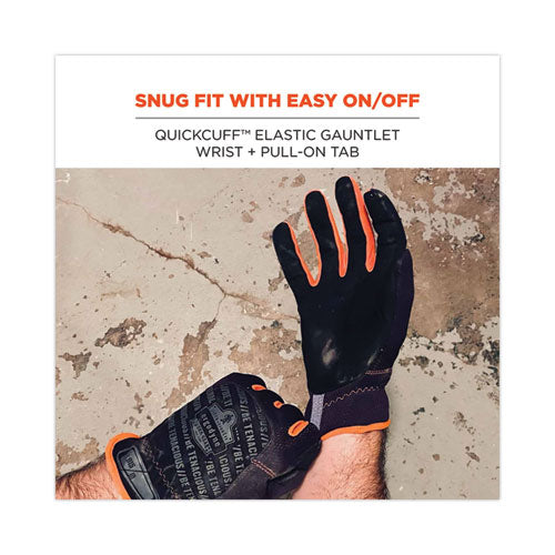 The ProFlex 815 QuickCuff Mechanics Gloves are built for versatile hand protection on a variety of jobs. A synthetic leather palm and reinforced thumb saddle provide enhanced grip and feel when handling materials. These comfortable utility work gloves are made of a flexible and breathable poly mesh for cool, no-bulk wear. A QuickCuff elastic gauntlet wrist means a snug fit, while the pull-on tab makes for easy on and off. An ID space along the hook-and-loop closure to help workers keep track of their gloves. A great multipurpose glove for anyone needing versatile hand protection for a variety of tasks.Note: This is a non-returnable item.