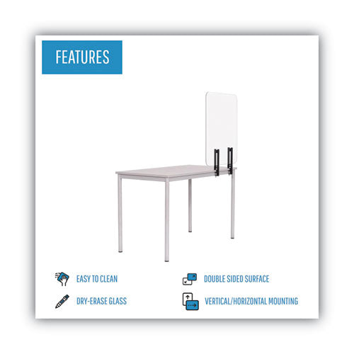 Due to the COVID-19 pandemic, social distancing and personal protection have become the new norm in order to stay safe. MasterVision introduces to you the Protector Series, designed specifically to protect you in public spaces. The Protector Frameless Glass Desktop Divider is an important tool that helps users maintain contact while still being protected. Ideal for shared office spaces and other public settings. Extremely easy to clean and sanitize. Features a pair of robust clamps which attach to the tabletop or desktop.
