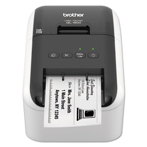Create cost-effective paper labels for packages, envelopes, file folders, name badges, postage and more. Super-fast printing up to 93 standard address labels per minute with black text at 300 dpi. Auto cutter allows for printing one or multiple labels at a time, eliminating wasted label sheets. The "Plug and Label" feature supports quick label printing of most basic labels - no software installation required for Windows® PCs. P-touch Editor software for Windows® and Mac® lets you create labels as you desire. Print from Microsoft® Word®, Excel® and Outlook®. Convenient, Brother DK drop in labeling supplies. Needs no ink or toner.Package Includes: P-Touch Editor Software and Driver; AC Power Cable; USB Cable; DK-1201 Diecut Address Label Starter Roll; DK-2251 Continuous Red/Black Length Paper Tape Starter Roll