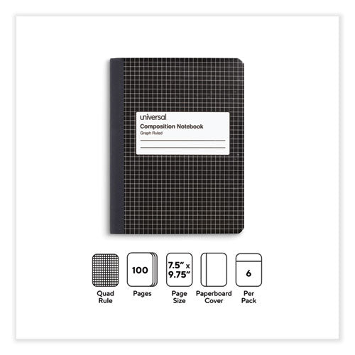 Quad Rule Composition Book, Quadrille Rule (4 sq/in), Black Marble Cover, (100) 9.75 x 7.5 Sheets, 6/Pack