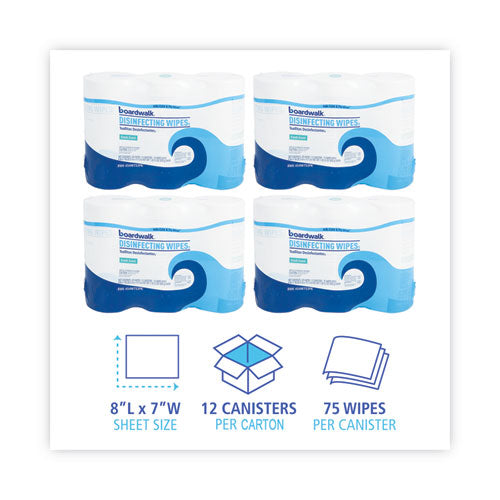 Quat-Based Disinfecting Wipes, 7 x 8, Fresh Scent, 75/Canister, 12 Canisters/Carton