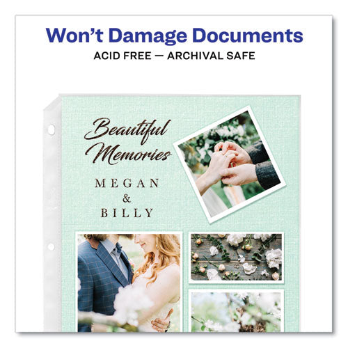 Update your bound pages in record time with these Quick Load™ Sheet Protectors. Each sheet protector is open on the top and one side so you can easily peel back the top layer to insert and remove sheets quickly, making them ideal for pages that need to be updated or removed frequently. Acid-free and archival-safe material won't lift print off pages for an impressively clear view of every page you insert. A clear binding edge lends a sharp and professional look to every page. The durable material resists tearing on the rings of your binder, allowing you to insert and remove pages from these sheet protectors again and again.