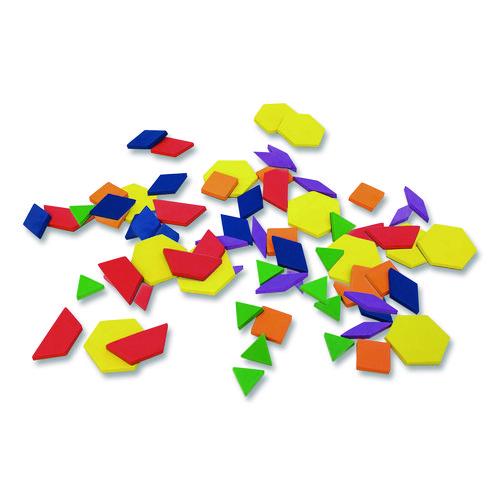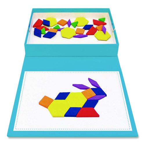 These brightly colored foam magnetic pattern blocks are ideal for reinforcing symmetry, geometry, visual perception, shape recognition, sorting, early problem-solving skills and fractions. Using standard geometric shapes, these blocks can be used across all age ranges by simply modifying the activity for a child.Package Includes: (8) Double-Sided Cards