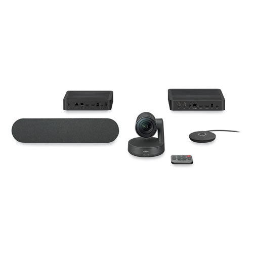 Logitech Rally delivers studio-quality video, unmatched voice clarity, and RightSense™ automation for better, more natural meetings with most any software-based video conferencing service. Premium 4K optics and intelligent PTZ features capture every seat in meeting rooms and classrooms. Front-of-room speakers and an expandable beamforming mic pod array deliver natural-sounding audio to everyone in the meeting. RightLight™ for automatic facial luminance and color optimization, RightSound™ for automatic audio calibration, and RightSight™ for proactive camera control. Rally includes a camera, table and display hubs, which minimize cross-room cabling, one speaker and one mic pod. With its sleek design, premium materials, and unequalled capability, the Rally portfolio raises the bar for USB-connected conference camera systems.Package Includes: (2) A/C Cables; CAT6a Ethernet Cable; Documentation; Rally Display Hub; Rally Table Hub; Rally Speaker; Rally Mic Pod; Remote Control; USB Type C to USB Type C Cable; USB Type A to USB Type B Cable; (2) HDMI Type A Cables; (2) Power Supply
