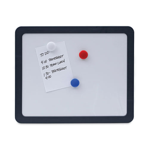The perfect writing surface for notes and messaging at your fingertips. Great for lists, reminders, schedules, and more. Constructed with magnetized melamine surfaces. Rounded corners for easy transport. Board may be mounted directly to cubicle panels, hung over cubicle panels using Universal 08173 hangers, or mounted directly to ferrous metal surfaces using Universal 08172 magnets (hangers and magnets sold separately).Package Includes: (3) Magnets; (2) Cubicle-Attachment Pins